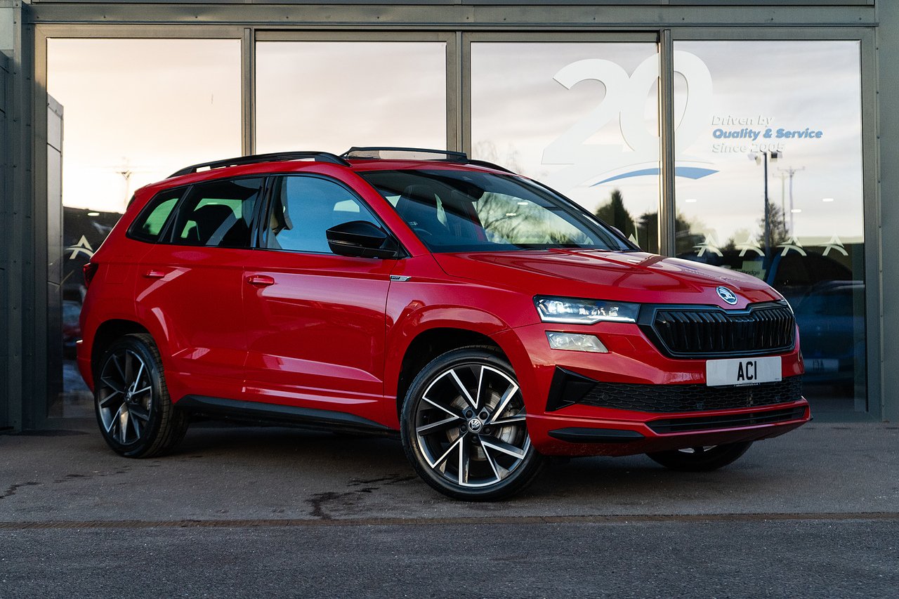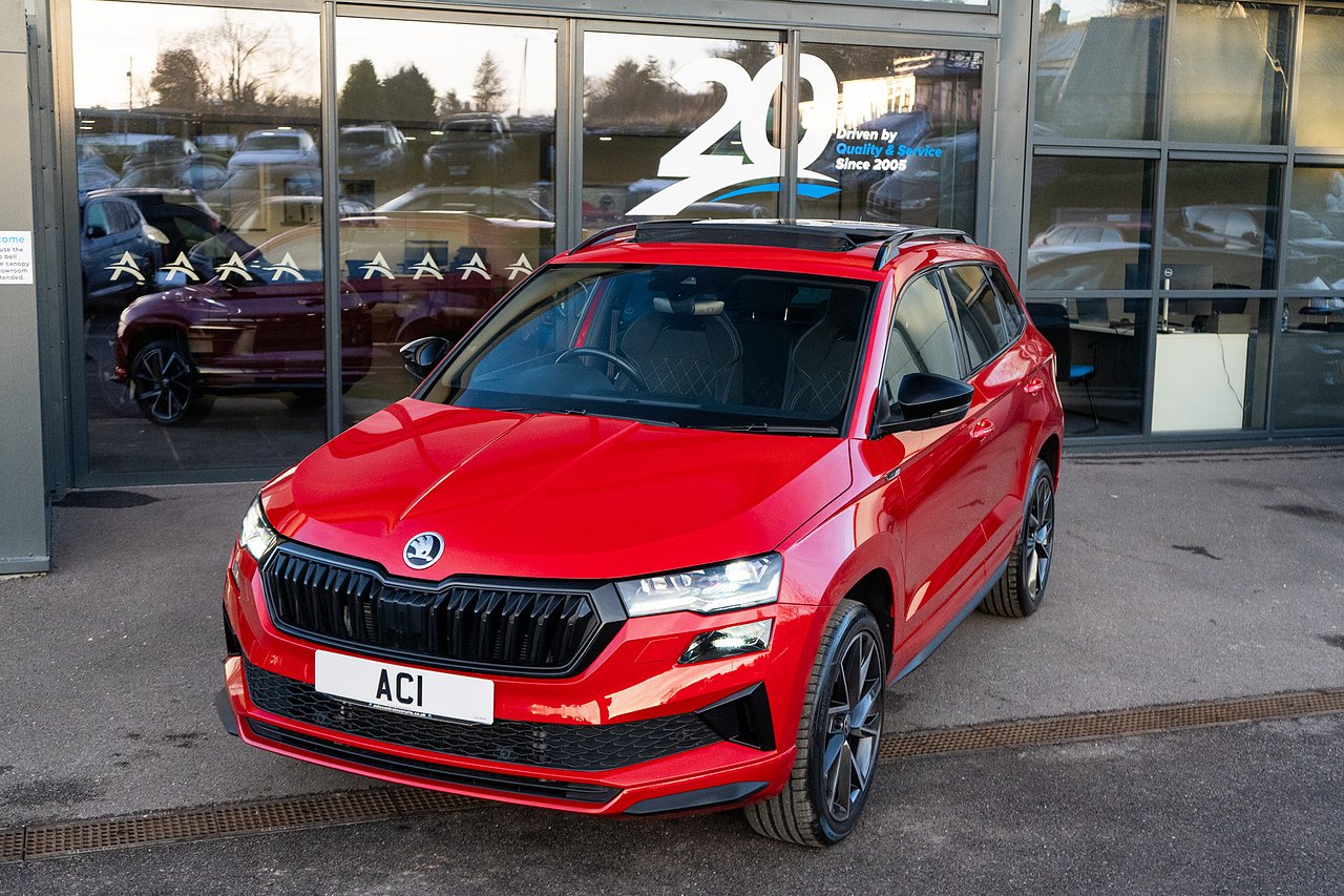 Finished in striking Velvet Red, this 2023 Skoda Karoq 4x4 is a one-owner example that combines smart SUV styling with everyday usability. The specification is strong, highlighted by a panoramic glass roof that floods the cabin with light, a heated steering wheel for added comfort, and a reverse camera to make parking effortless. Practical, well built and generously equipped — with much more besides — this Karoq is an excellent all-rounder suited to both family life and longer journeys.