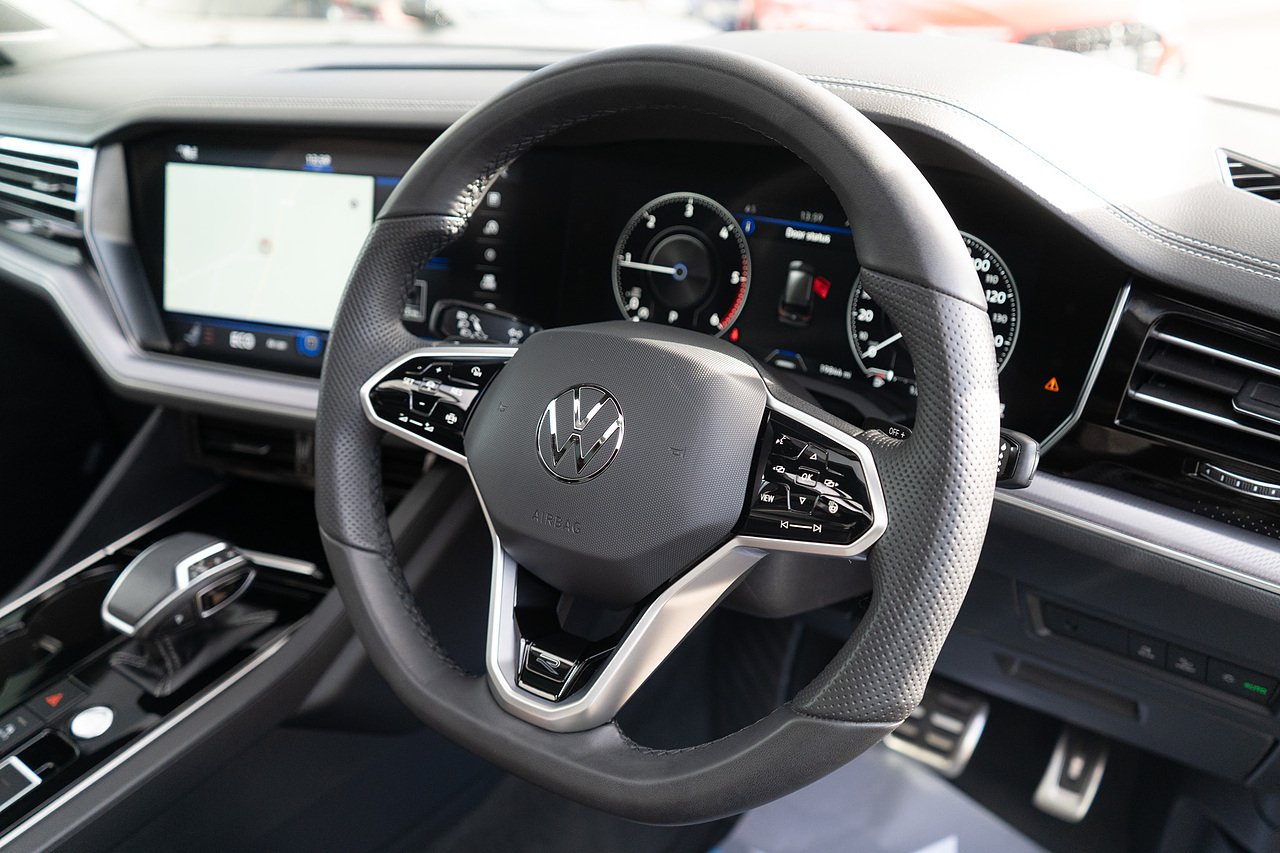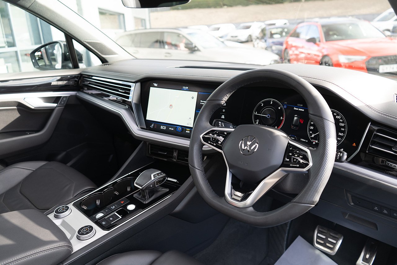 The 2023 Volkswagen Touareg V6 Black Edition finished in Pure White is a sophisticated and powerful SUV that perfectly balances luxury, performance, and everyday practicality. Powered by a smooth and responsive V6 engine, it delivers effortless performance while maintaining refined comfort on every journey. This example features a panoramic sunroof that floods the cabin with natural light, heated front and rear seats for exceptional comfort in all seasons, and Dynamic Chassis Control (DCC) for a tailored driving experience that adapts to your preferred level of comfort or sportiness. With its striking Black Edition styling, advanced technology, and premium interior finish, this Touareg offers an impressive combination of presence, performance, and first-class comfort.